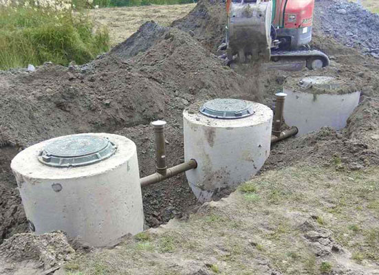 Наша компания монтирует современные септики KANN®. Подобные системы позволяет очистить канализационные стоки до уровня технической прозрачной воды без запаха (очистка до 98%). Далее техническая вода отводится в грунт. Нерастворимый мусор, переработанные остатки ила, пищевых отходов хранятся в станции, и удаляются обычно один раз в год.